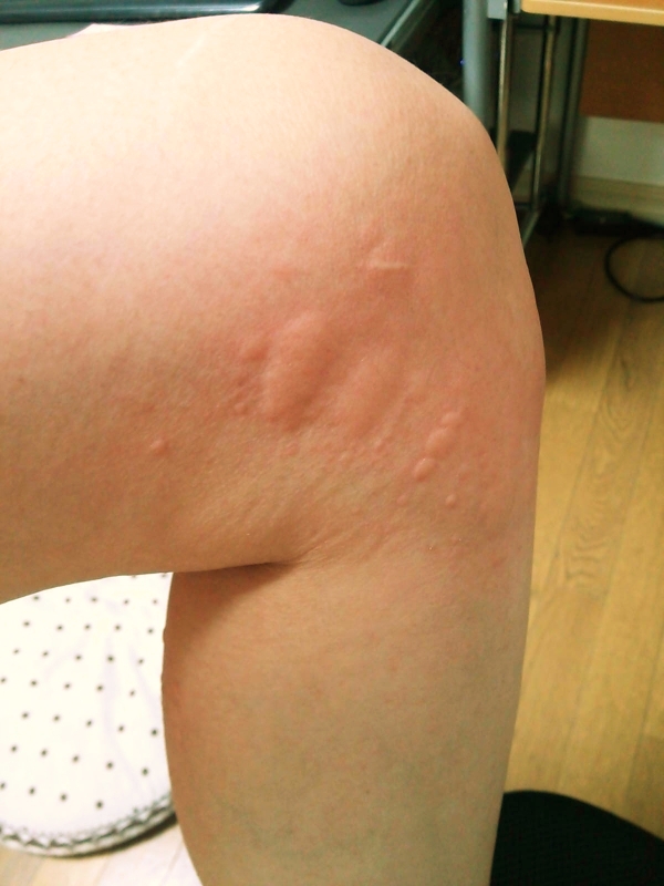 診察台に上がろうと、レギンス脱いだらじんましんがすっかり消えていた。