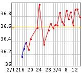 高温期も3/1からと思ってたけど、このグラフを見ると3/1~3/4は36.6あたりをうろうろしてるなー。